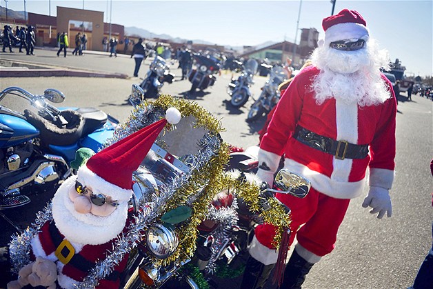 Nov. 27, 2012: Rey Grego, a trucker dressed as Santa, joined hundreds of motorcyclists at Wilson Stadium in Albuquerque, N.M., on Nov. 25 for the annual toy run. The caravan of bikers then made its way through the streets collecting toys. (© Roberto E. Rosales/Albuquerque Journal/Zuma Press)