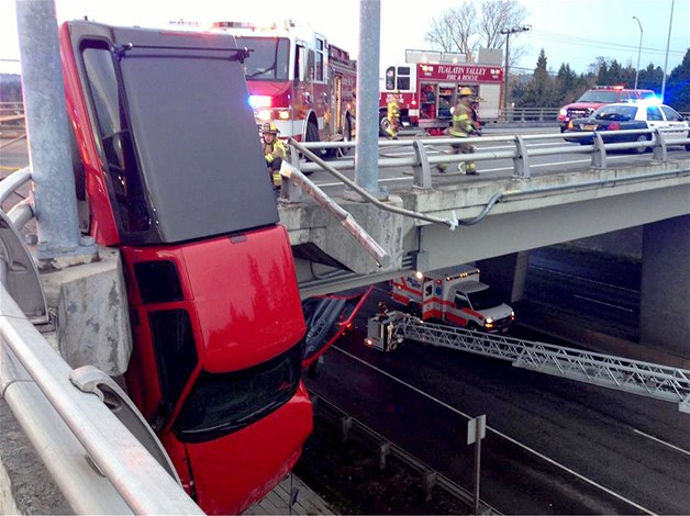Nov. 28, 2012: A man was arrested for DUI after crashing a truck into a bridge in Beaverton, Ore. (© Beaverton Police/Rex Features)